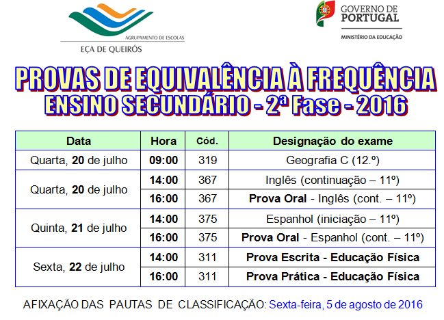 · As inscrições para os exames a nível de escola da época de fevereiro de 2017, decorrem até 16 de janeiro de 2017.